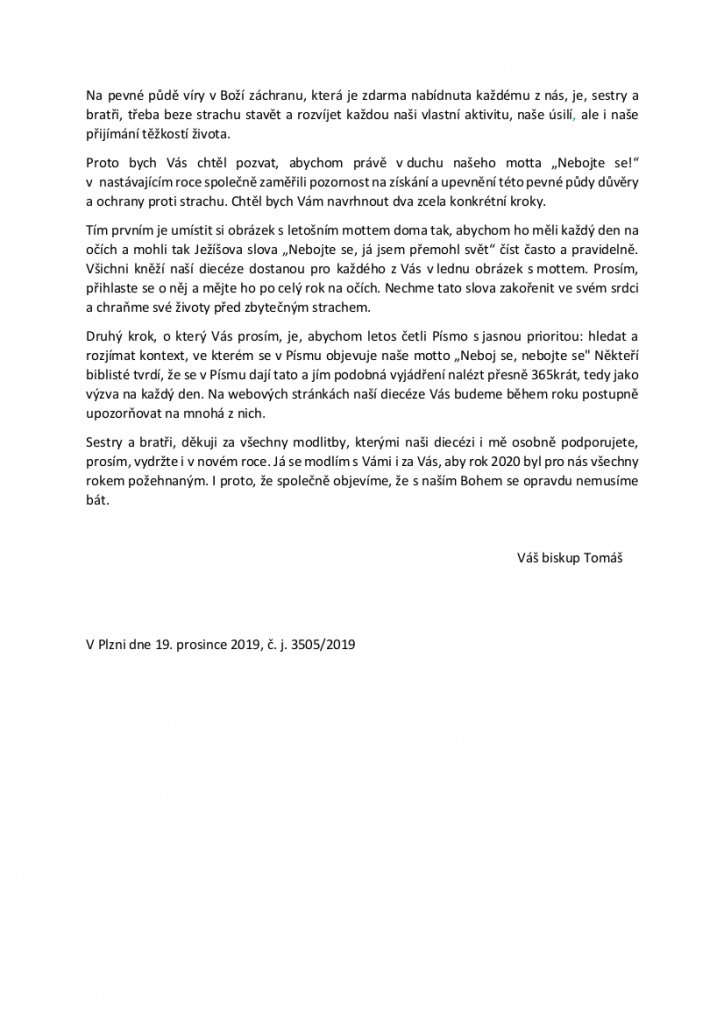 Pastýřský list biskupa Tomáše k 1. lednu 2020 2