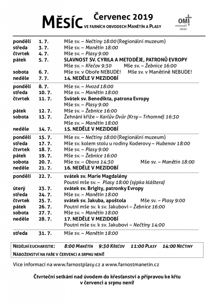 Je tu začátek prázdnin a s ním nový červencový rozpis.