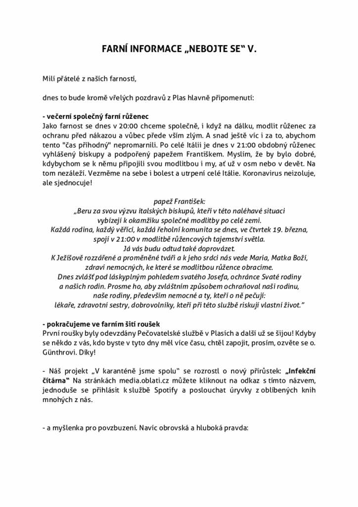 Nejnovější výzva pro farnost! Tentokrát s aktualitami už pro dnešní večer!